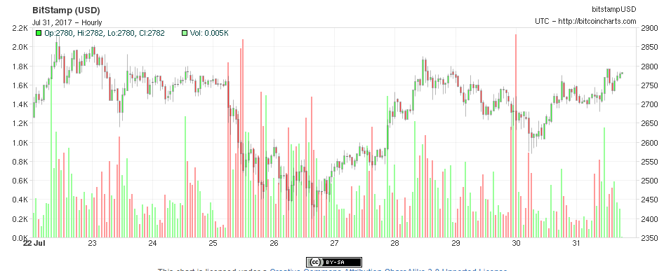 Despite the confusion and uncertainty, for the last week of July, the price of Bitcoin has hovered between $2500 and $2900. At present it’s near its all-time high at $2800.